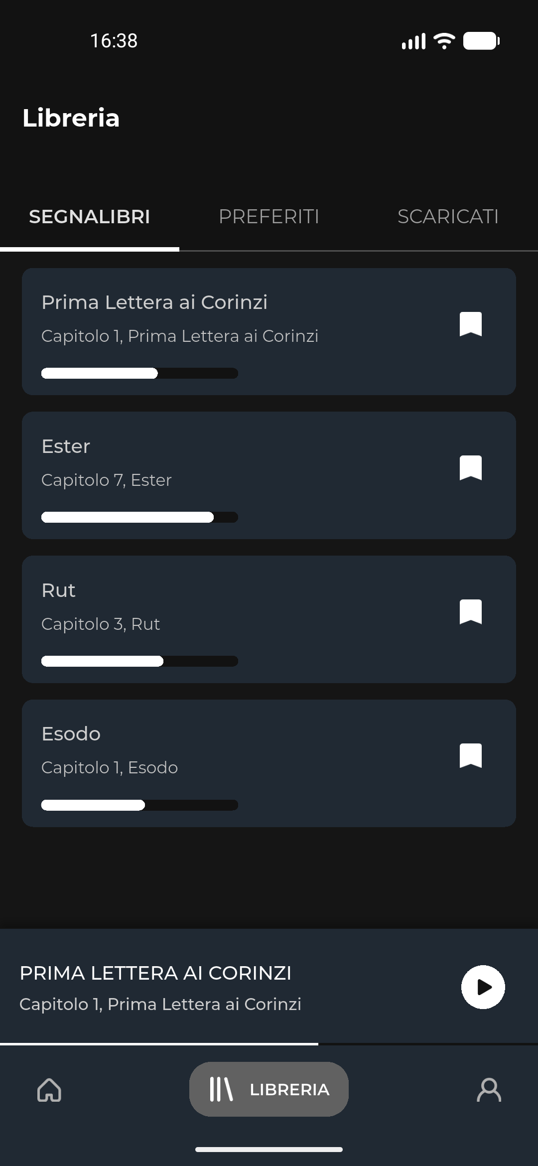 Tutto organizzato: scegli libri e capitoli specifici. L'Antico e il Nuovo Testamento sono sempre a portata di mano, proprio dove vuoi iniziare oggi.